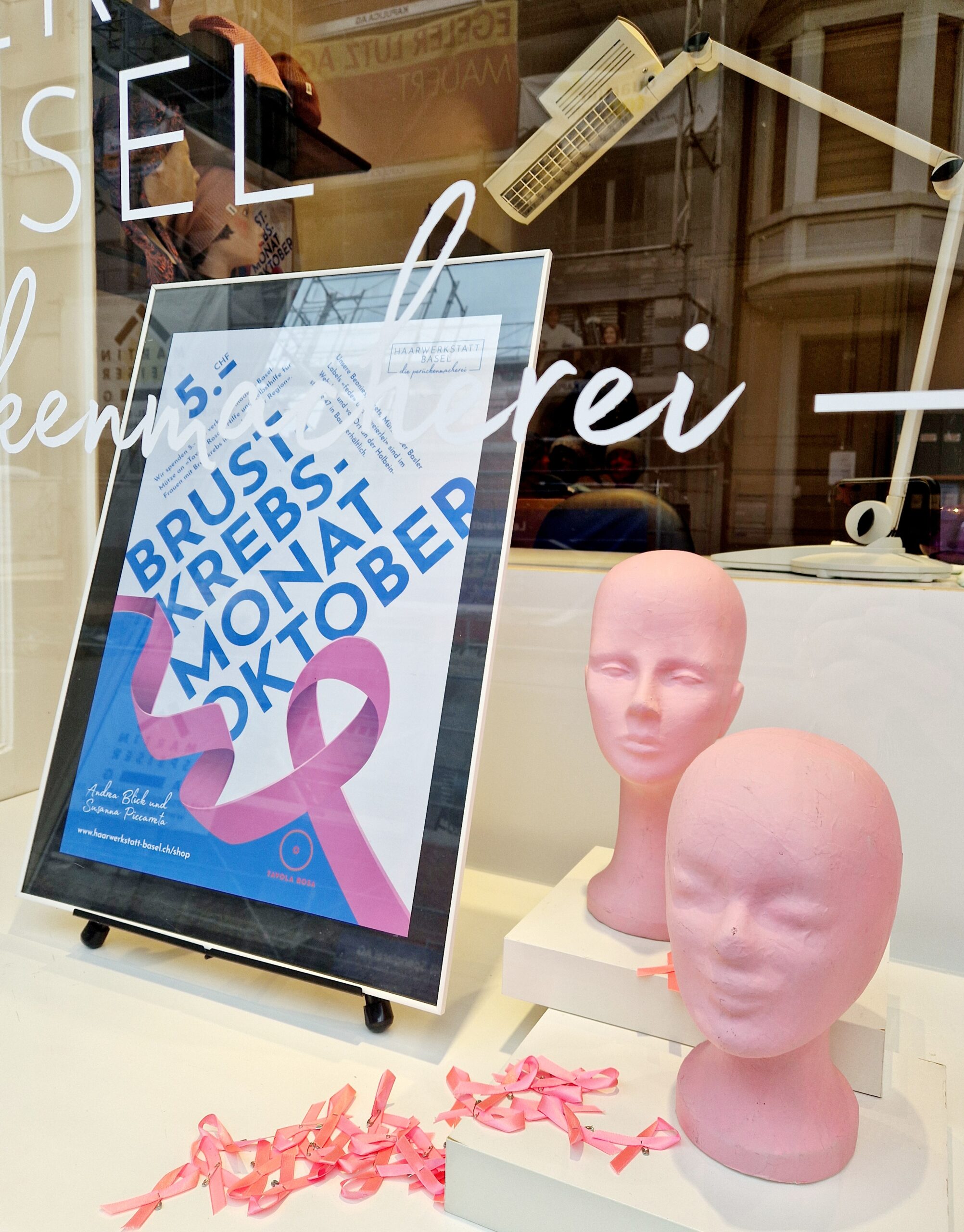 Rosa Schleifen und Spendenaktion für Tavola Rosa Basel